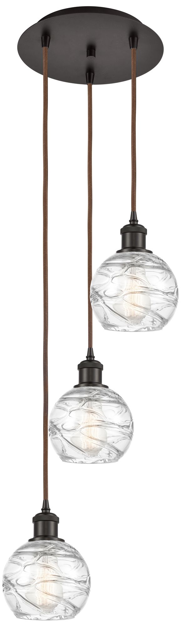 Athens 3-Light 13" Oil Rubbed Bronze Pendant With Clear Deco Swirl Sha