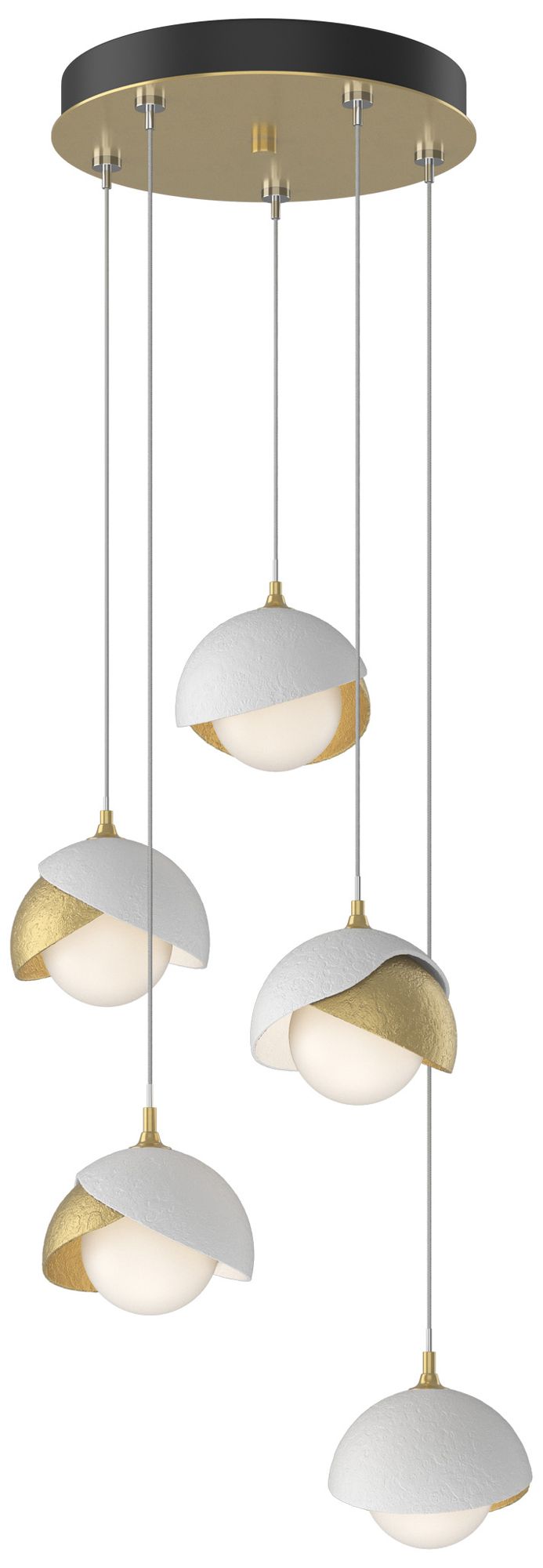 Brooklyn 16"W 5-Light White Accented Modern Brass Long Double Shade Pe
