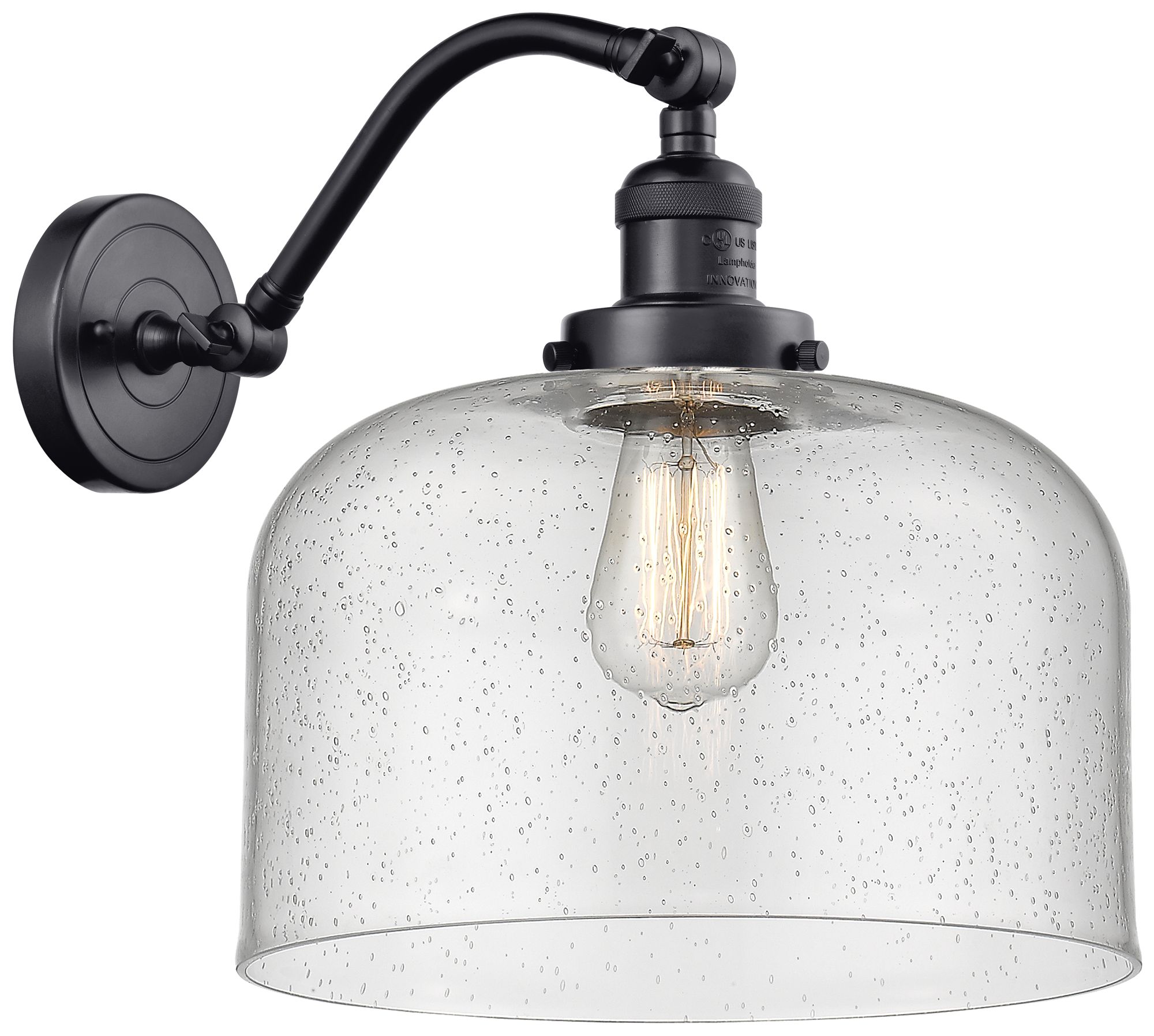 Bell 13" High Matte Black Sconce w/ Seedy Shade