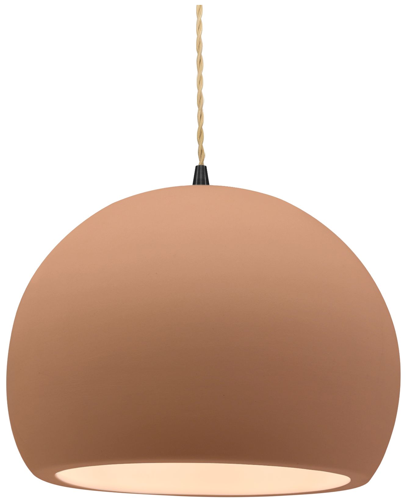 12.25"W Adobe Frame Matte Black Large Globe Beige Twisted Cord Pendant