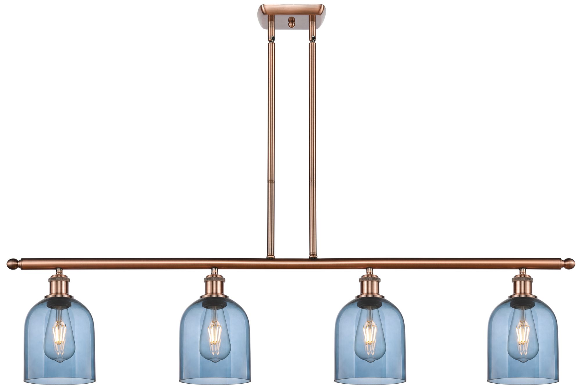 Ballston Bella 48"W 4-Light Copper Stem Island Light w/ Blue Shade