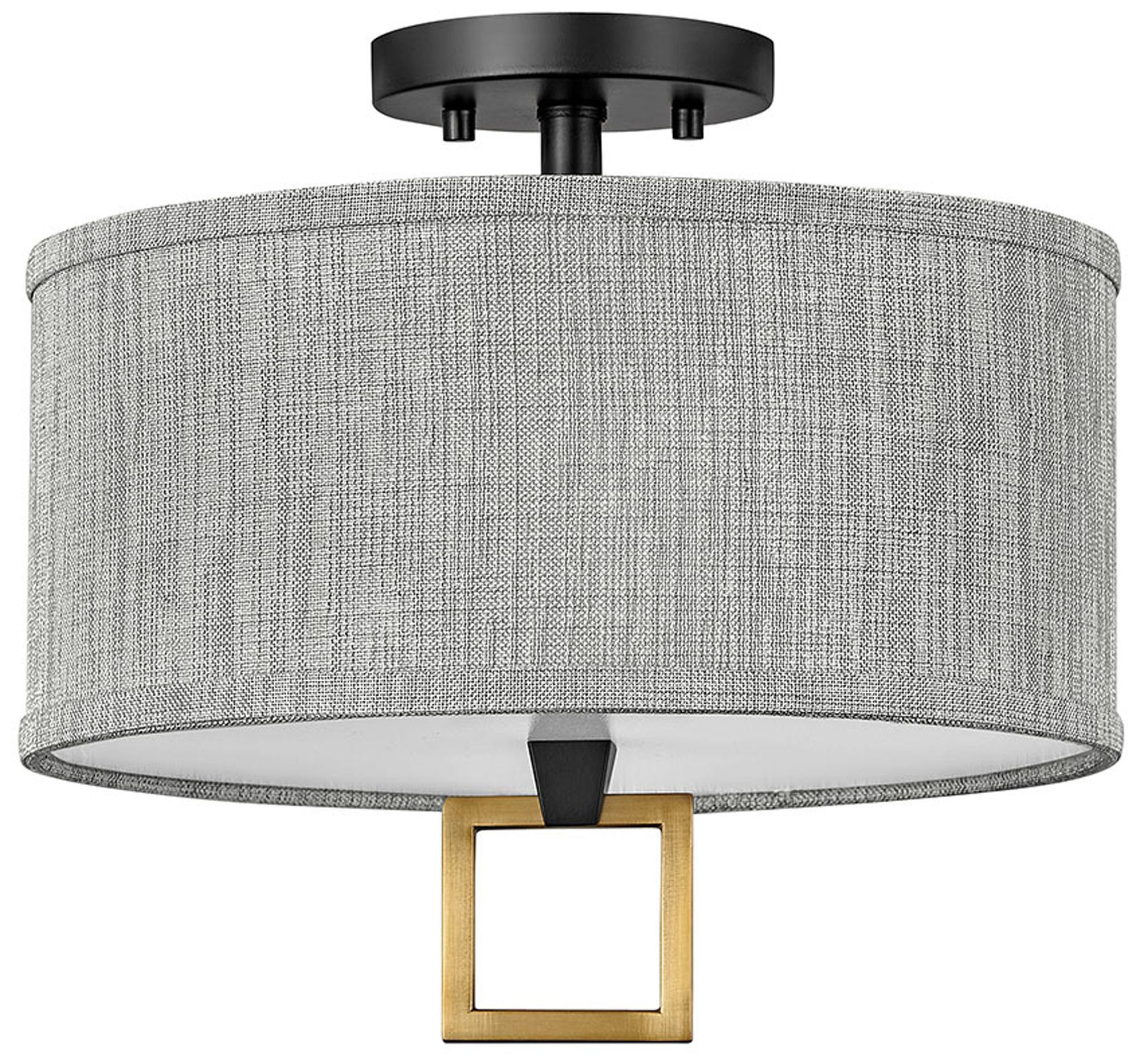 Link 13"W Black with Heather Gray Linen Shade Ceiling Light