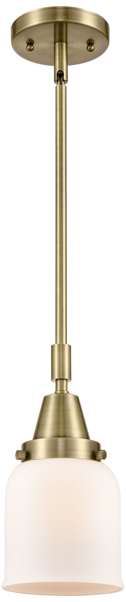 Caden Bell 5" Wide Antique Brass Stem Hung Mini Pendant w/ White Shade