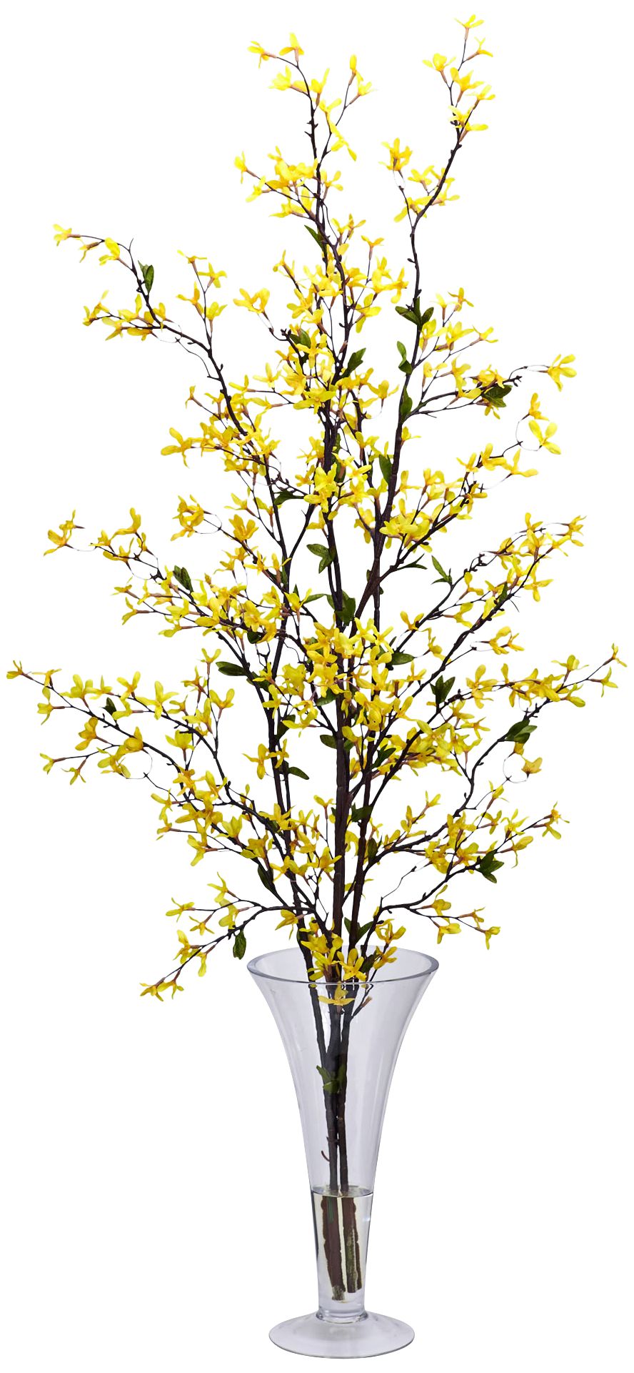 Yellow Forsythia 45" High Faux Flowers in Glass Vase