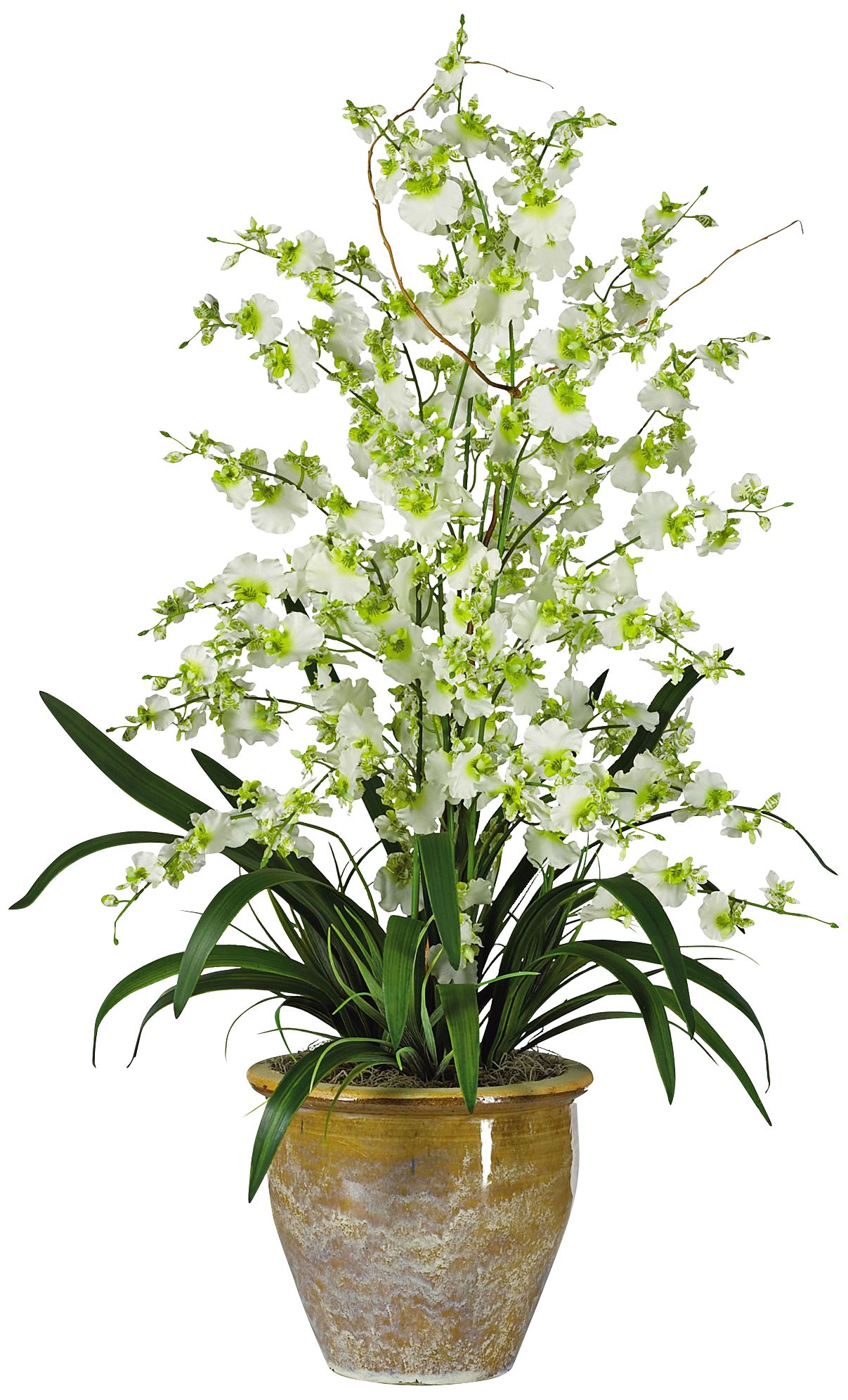 Dancing Lady Orchids 32" High Faux Flowers in Ceramic Pot