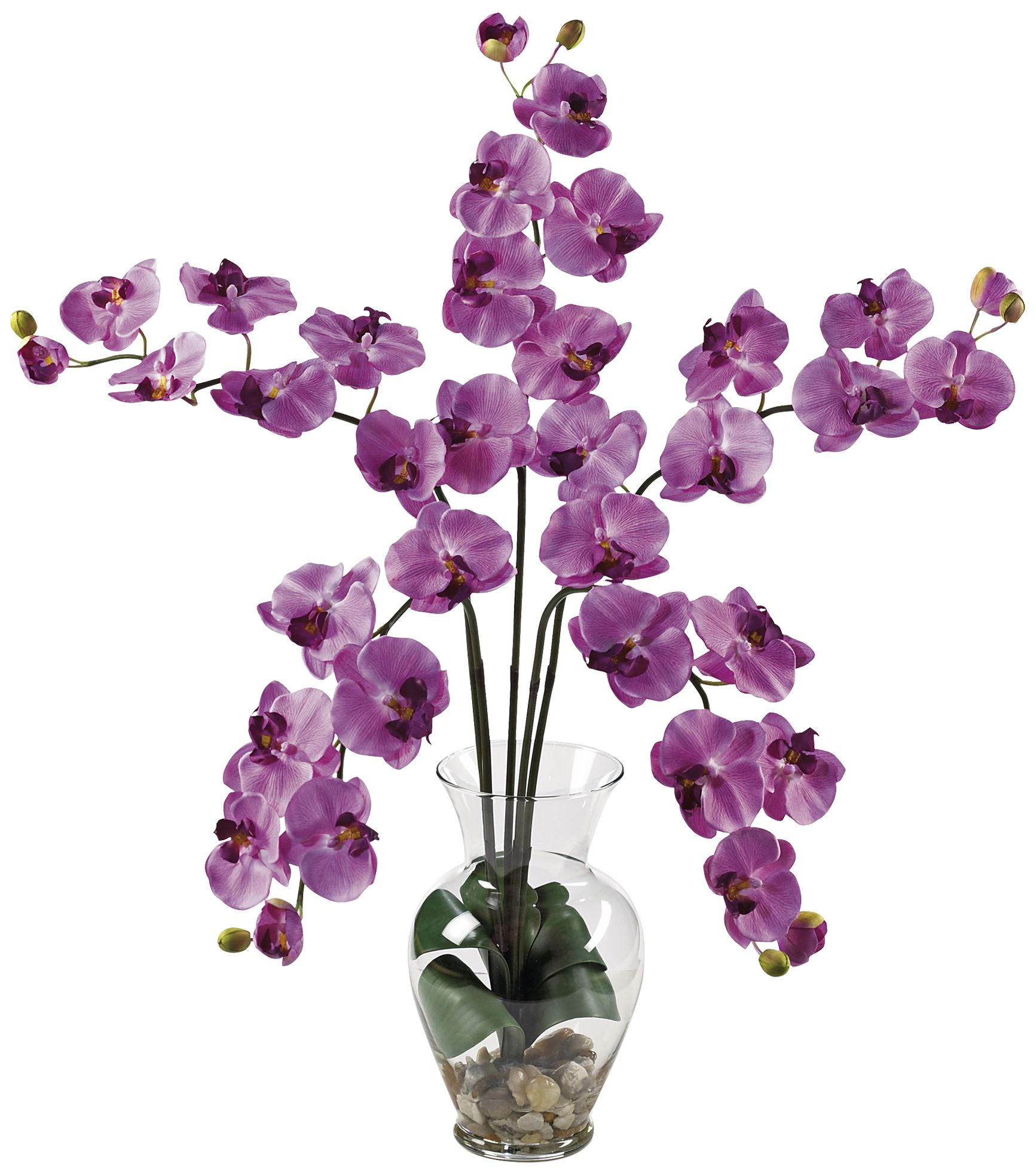 Mauve Phalaenopsis Orchid 31"High Faux Flowers in Glass Vase