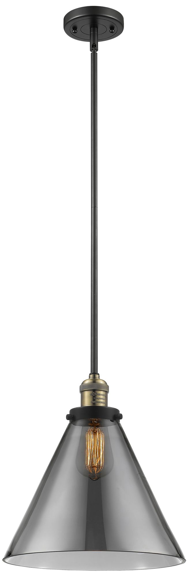 Franklin X-Large Cone 12" Black Brass Mini Pendant w/ Smoke Shade
