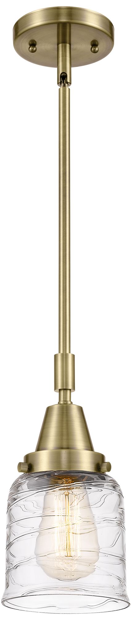 Caden Bell 5" Wide Antique Brass Stem Hung Mini Pendant w/ Deco Swirl