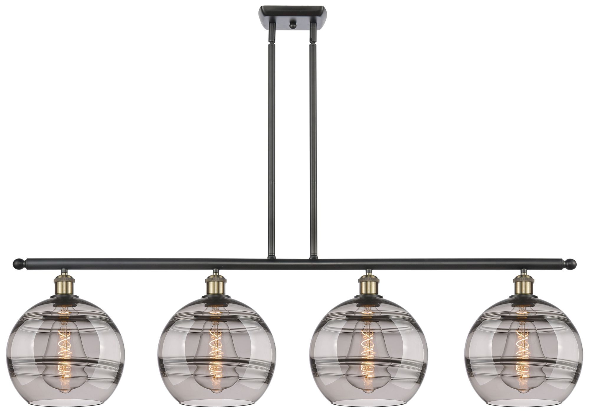 Rochester 48.25"W 4-Light Black Brass Stem Island Light w/ Smoke Shade