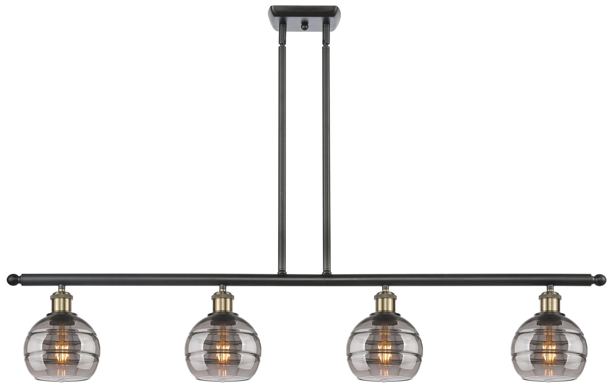 Rochester 48"W 4-Light Black Brass Stem Island Light w/ 6" Smoke