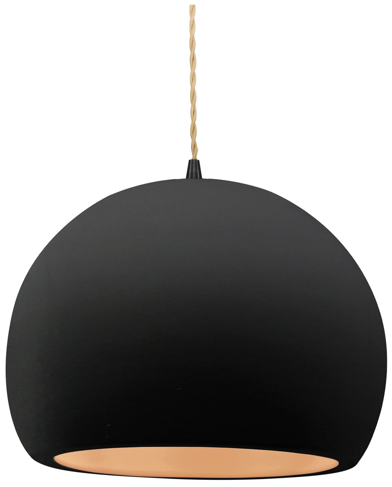 12.25"W Carbon/Gold Frame Matte Black Large Globe Twisted Cord Pendant