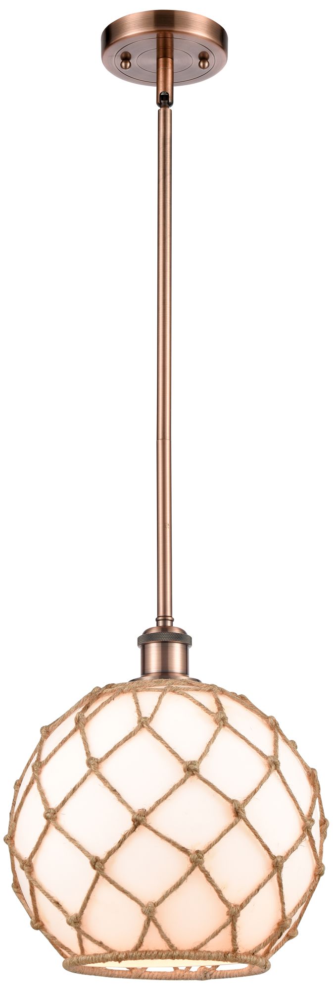 Farmhouse 10"W Stem Hung Copper Mini Pendant w/ White and Brown Shade