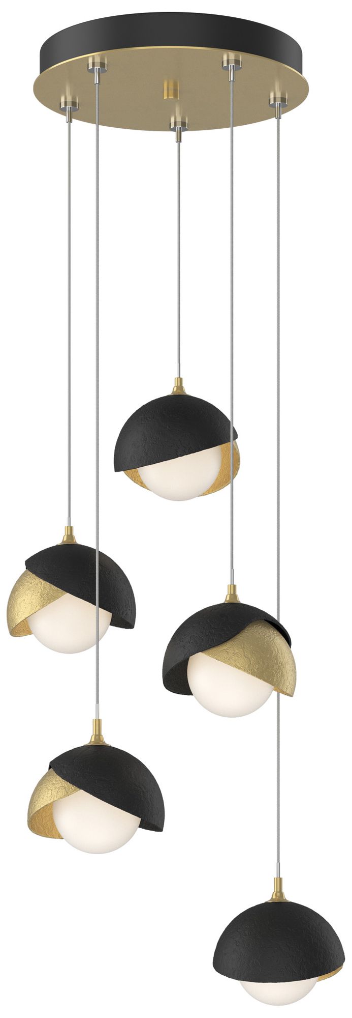 Brooklyn 16"W 5-Light Black Accented Modern Brass Long Double Shade Pe