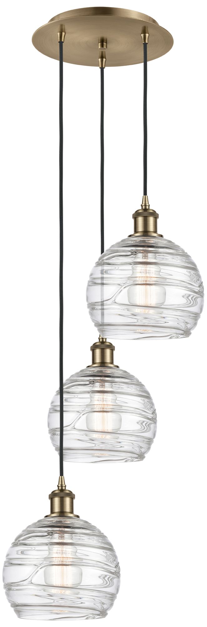 Athens 3-Light 15" Antique Brass Multi-Pendant With Clear Deco Swirl S