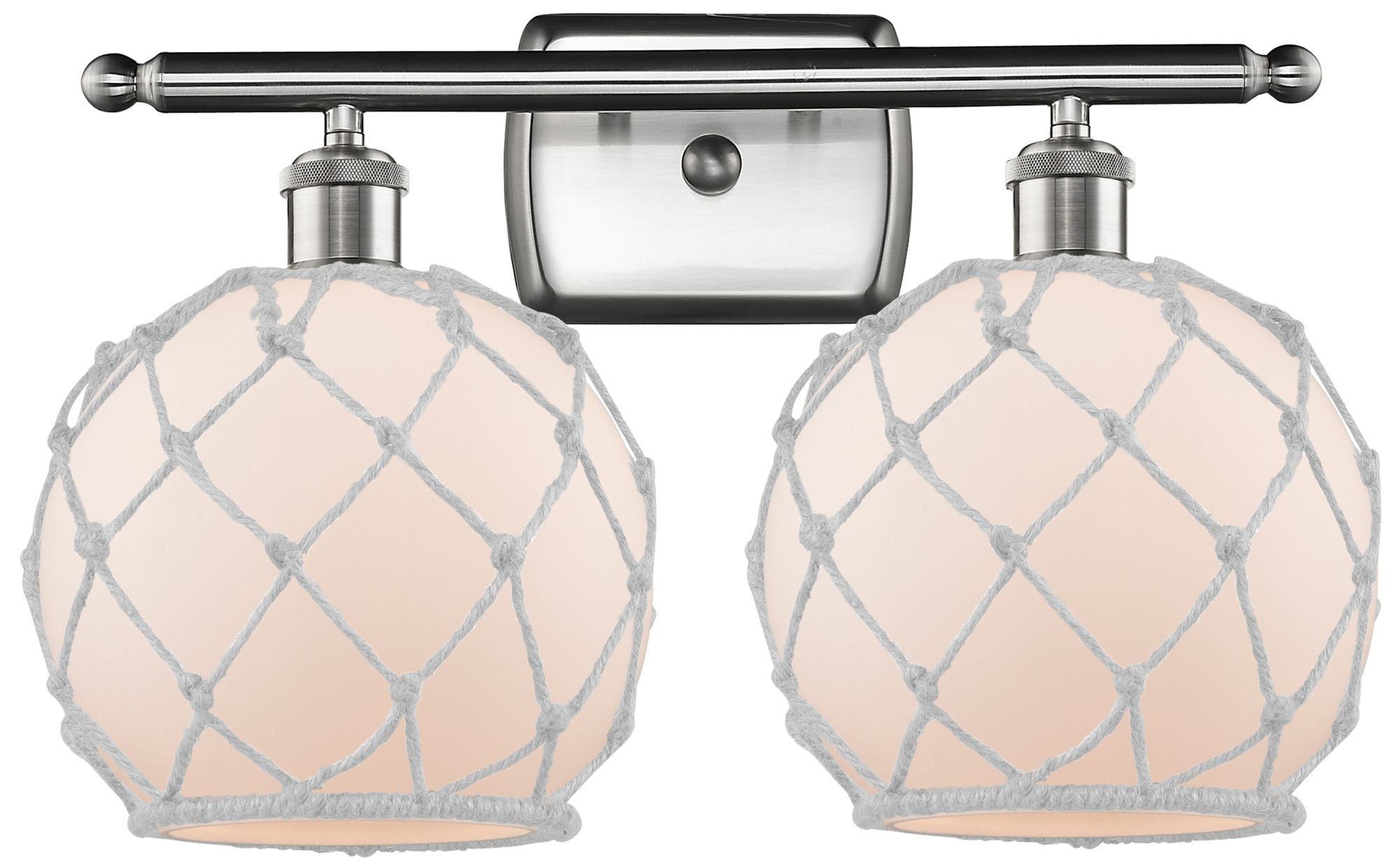 Farmhouse Rope 16"W 2 Light Brushed Nickel Bath Light w/ White Rope Sh