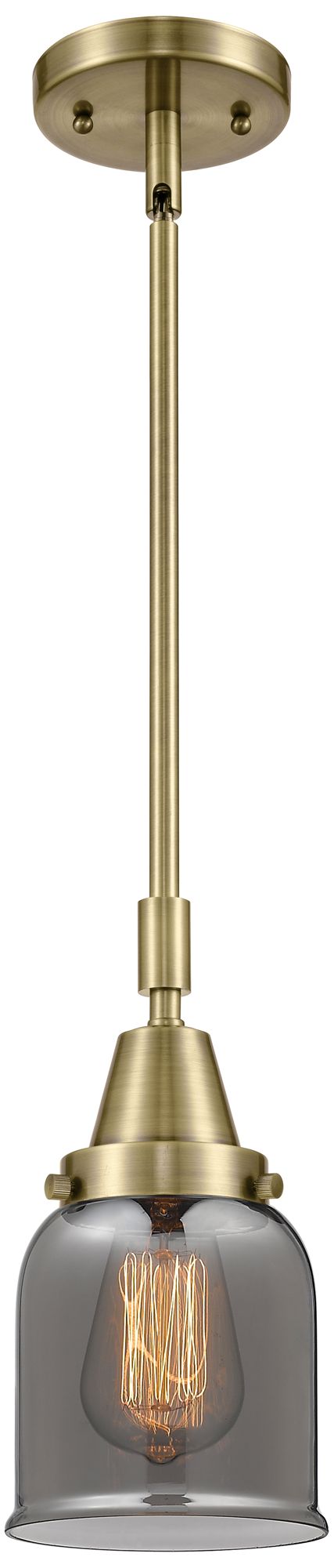 Caden Bell 5"W Antique Brass Stem Hung Mini Pendant w/ Plated Smoke Sh