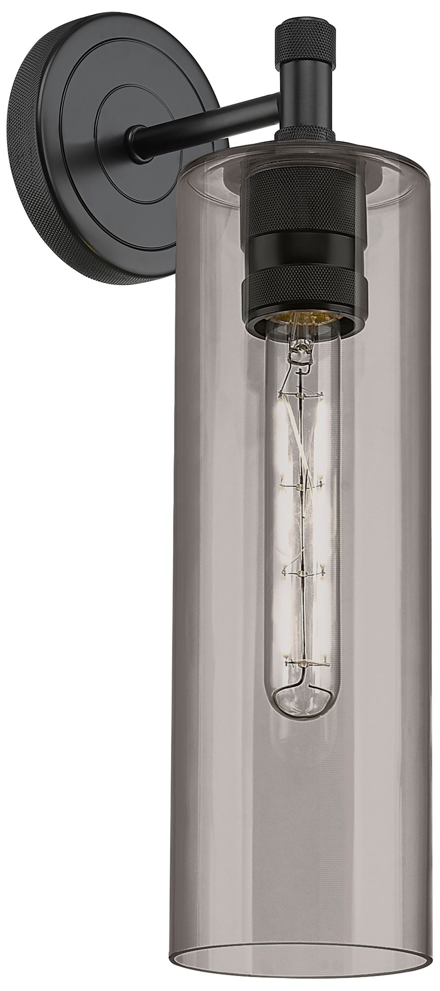Crown Point 15.5" High Matte Black Sconce With Plated Smoke Glass Shad