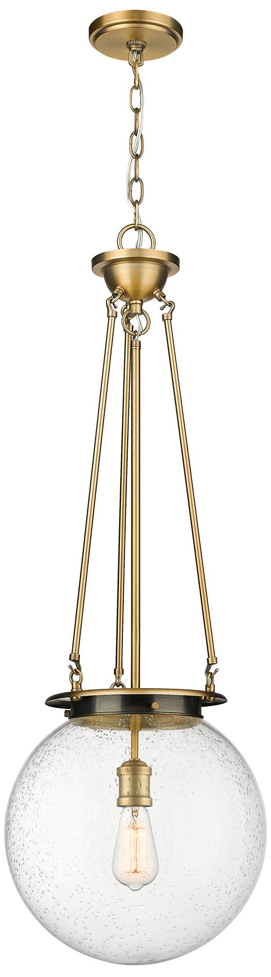 Beacon 14" Wide Brushed Brass Pendant With Seedy Glass Shade