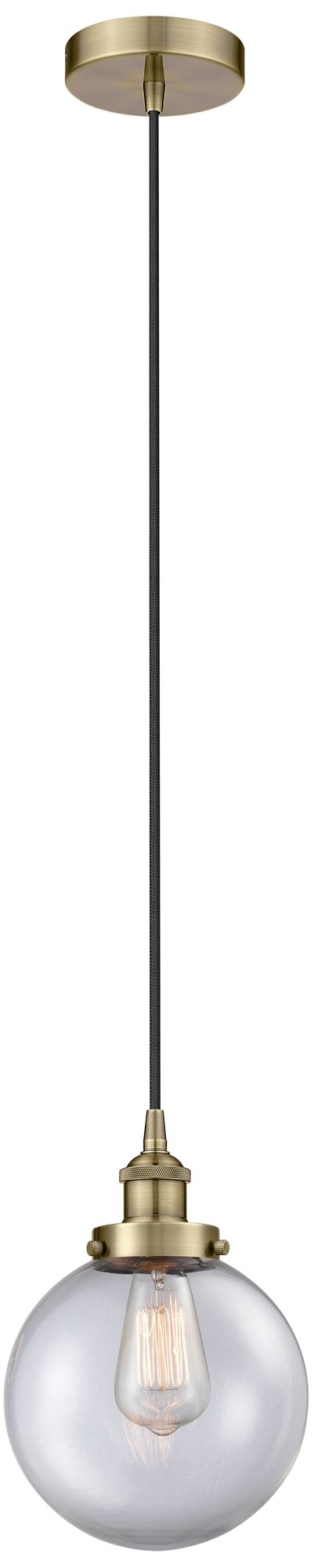 Beacon 8" Antique Brass Mini Pendant w/ Clear Shade