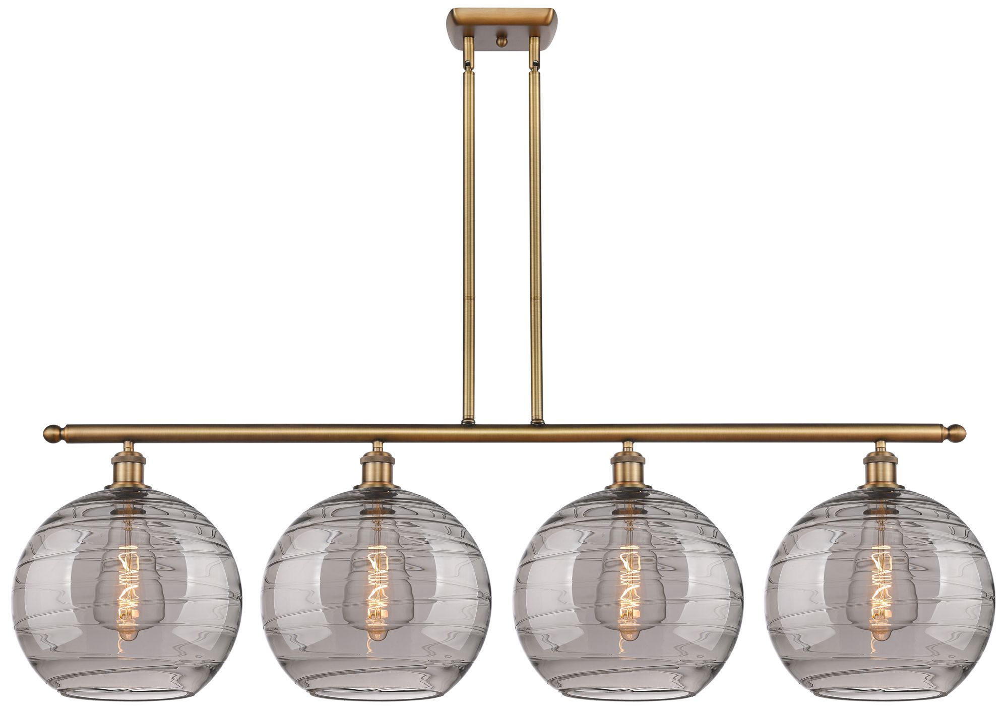Athens 50.25"W 4-Light Brushed Brass Stem Island Light w/ Smoke Swirl