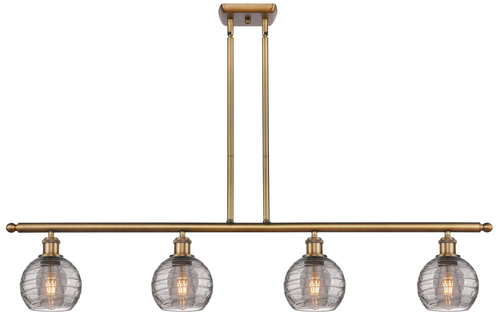 Athens 48"W 4-Light Brushed Brass Stem Island Light w/ 6" Smoke S