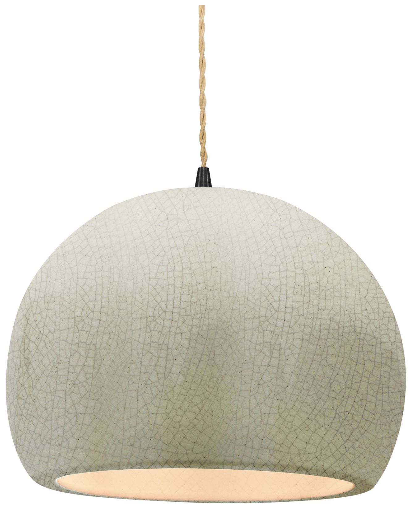 12.25"W White Crackle Frame Matte Black Large Globe Twisted Cord Penda