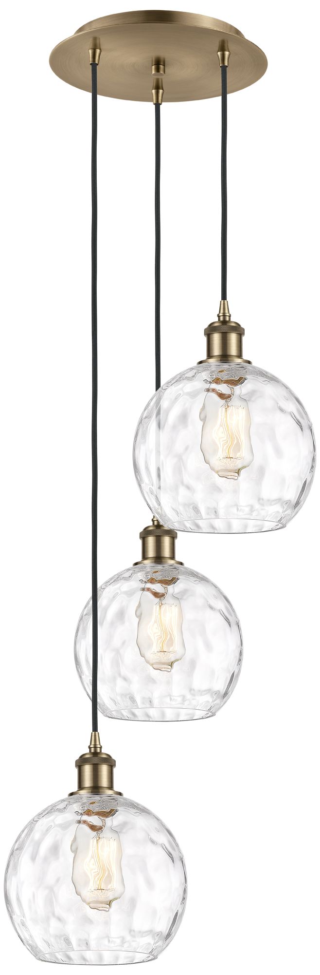 Athens 3-Light 15" Antique Brass Multi-Pendant With Clear Water Glass