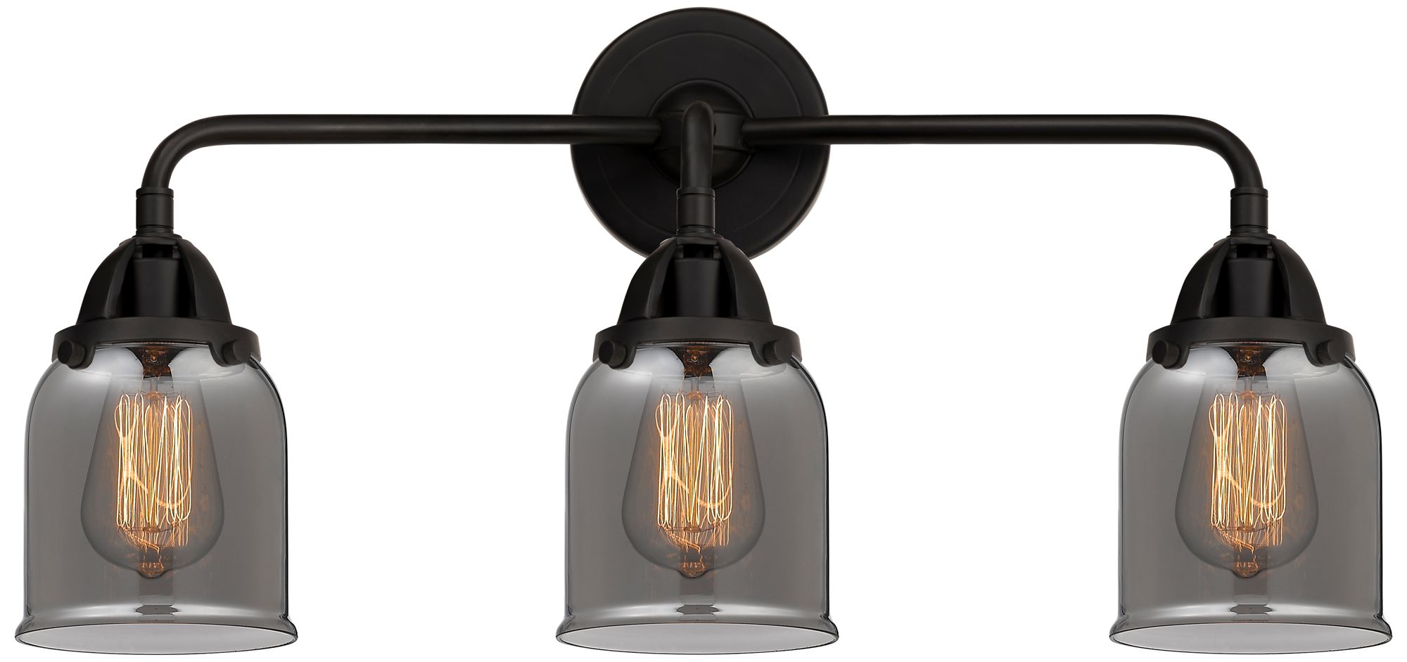 Nouveau 2 Bell 5" 3 Light 23" Bath Light - Matte Black - Plated S