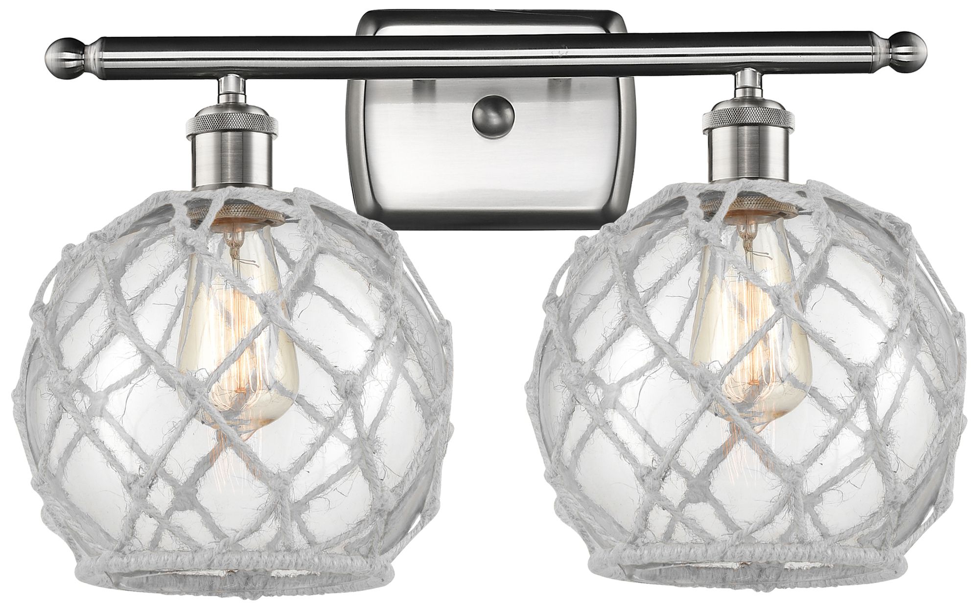 Farmhouse Rope 16"W 2 Light Brushed Nickel Bath Light Clear and White