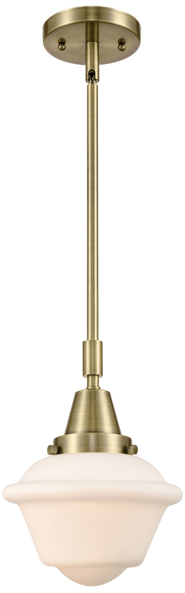 Caden Oxford 7.5" Wide Antique Brass Stem Hung Mini Pendant w/ White S