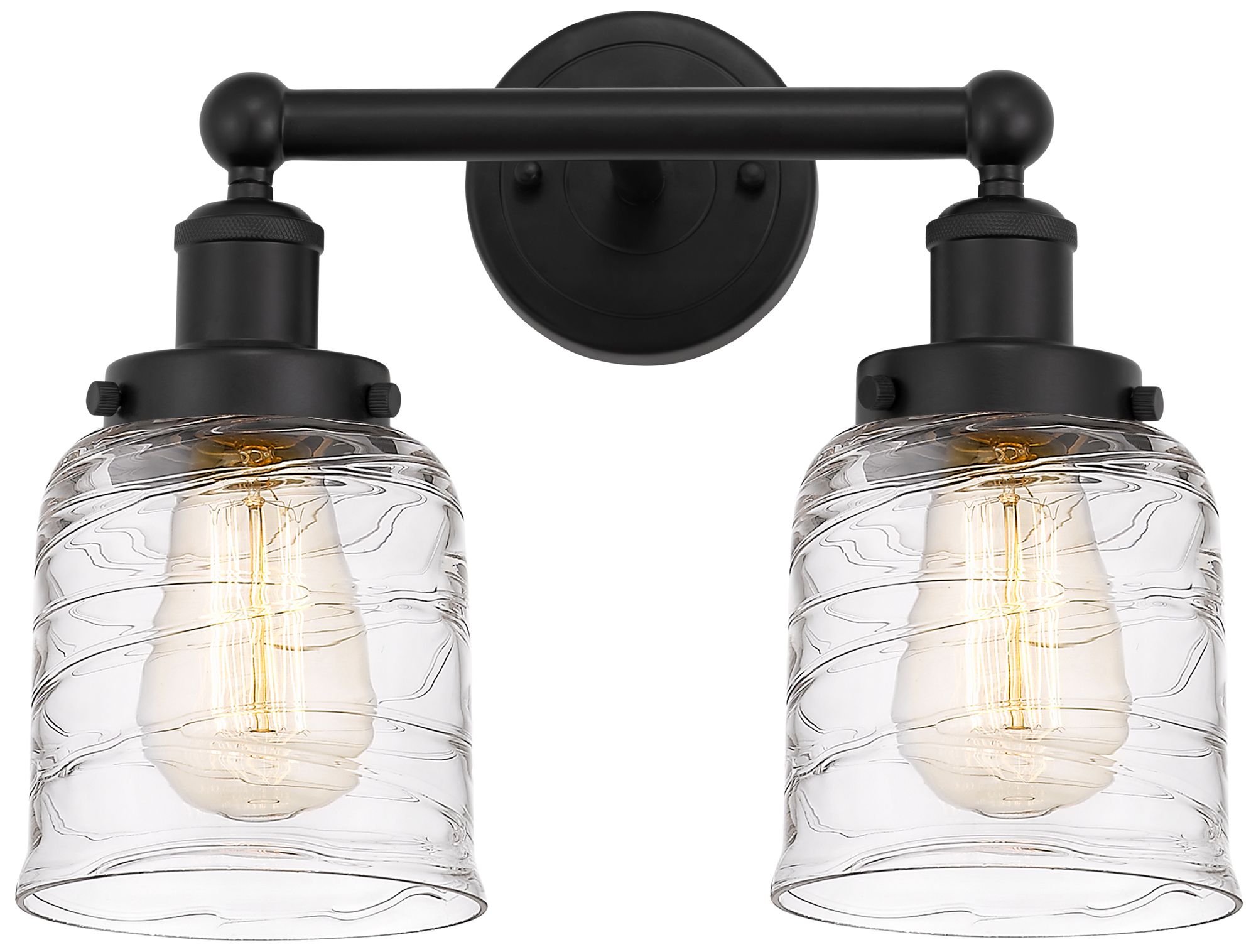 Edison Small Bell 16" 2-Light Matte Black Bath Light w/ Deco Swirl Sha
