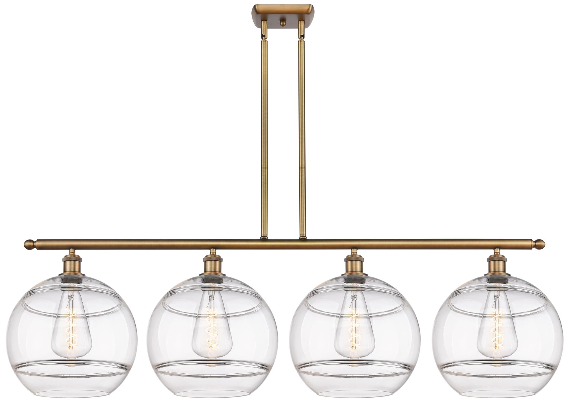 Rochester 50.25"W 4-Light Brushed Brass Stem Island Light w/ Clear Sha