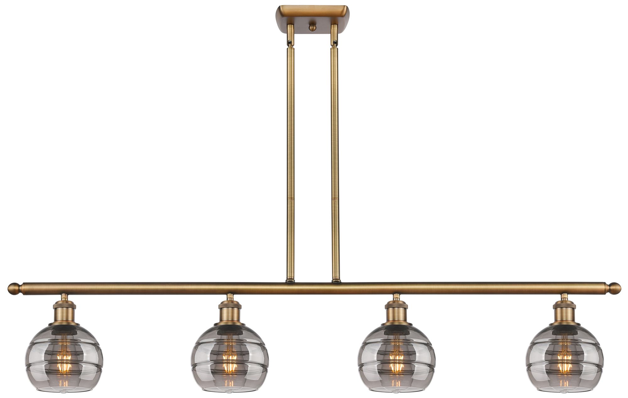 Rochester 48"W 4-Light Brushed Brass Stem Island Light w/ 6" Smok