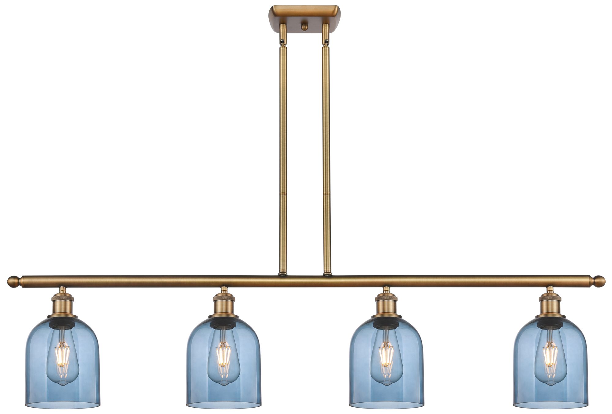 Ballston Bella 48"W 4-Light Brushed Brass Stem Island Light w/ Blue Sh