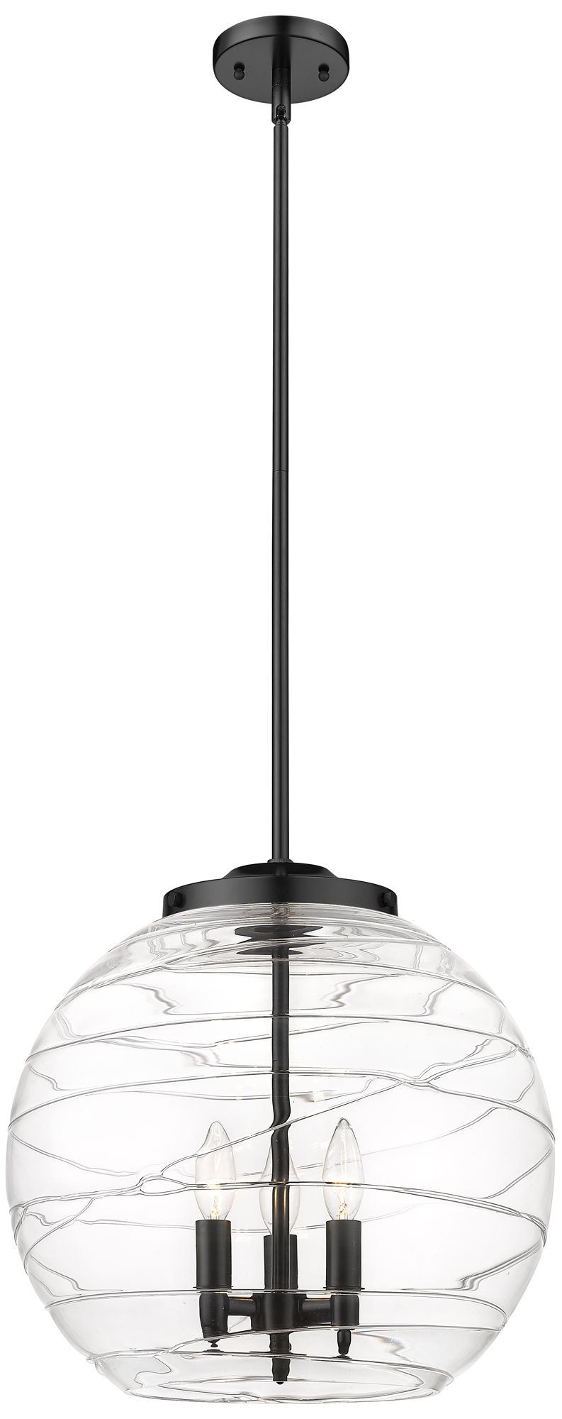 Athens 3-Light 16" Matte Black LED Pendant With Clear Deco Swirl Shade