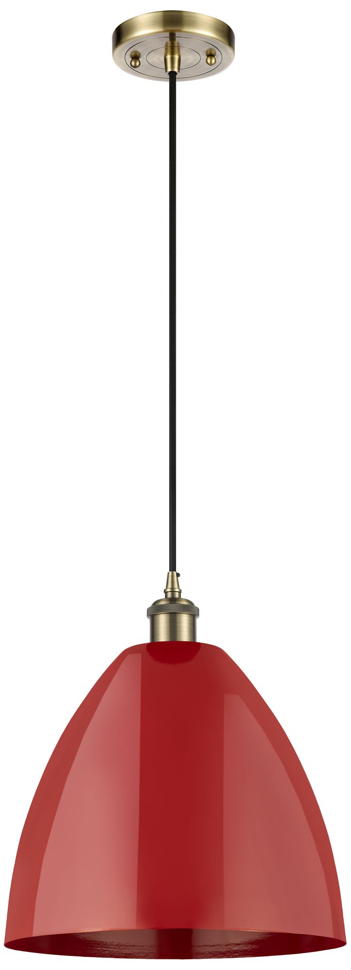 Ballston Plymouth Dome 12"W Antique Brass Corded Mini Pendant w/ Red S