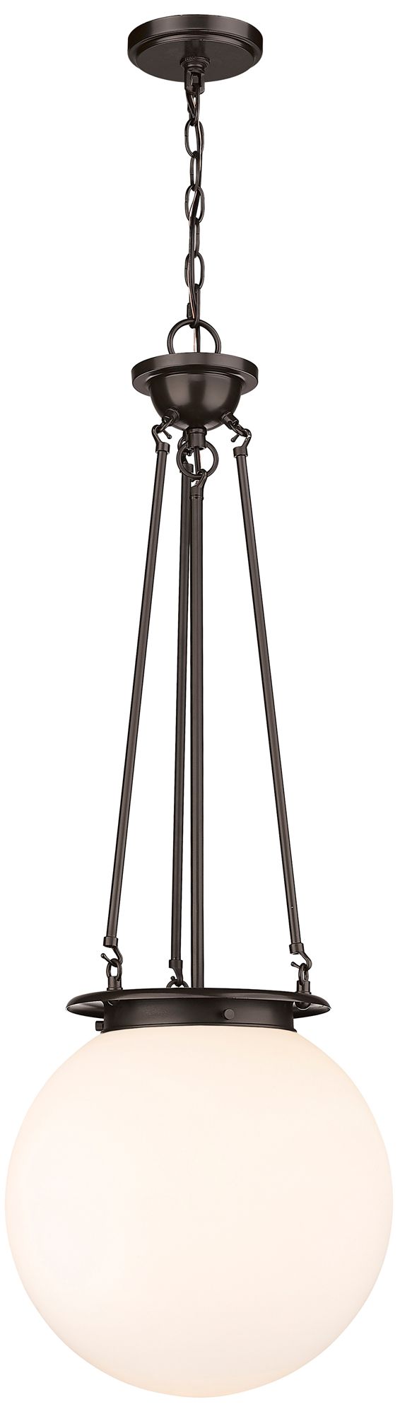 Beacon 14" Wide Oiled Brass Pendant With Matte White Glass Shade