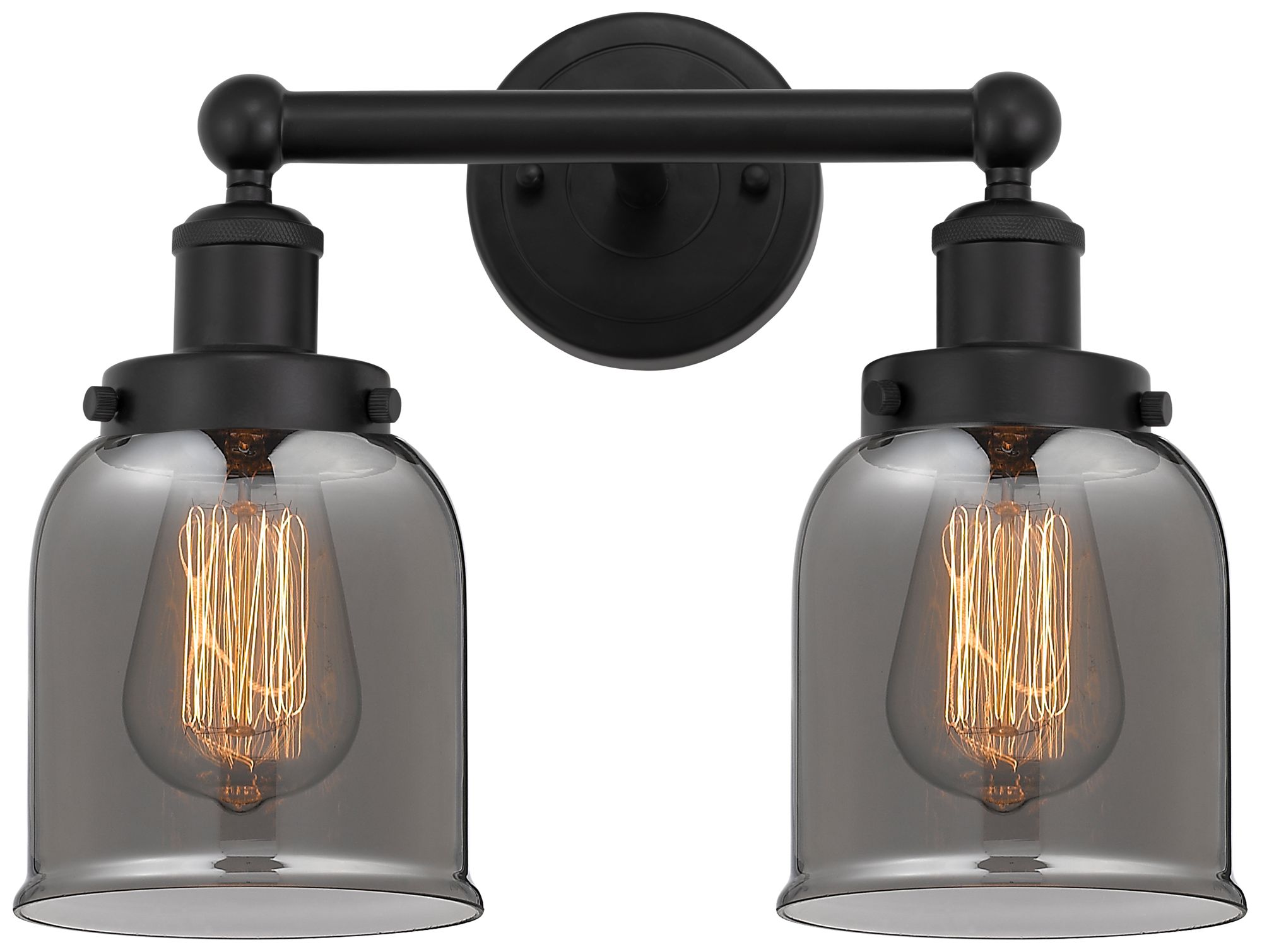 Edison Small Bell 16" 2-Light Matte Black Bath Light w/ Plated Smoke S