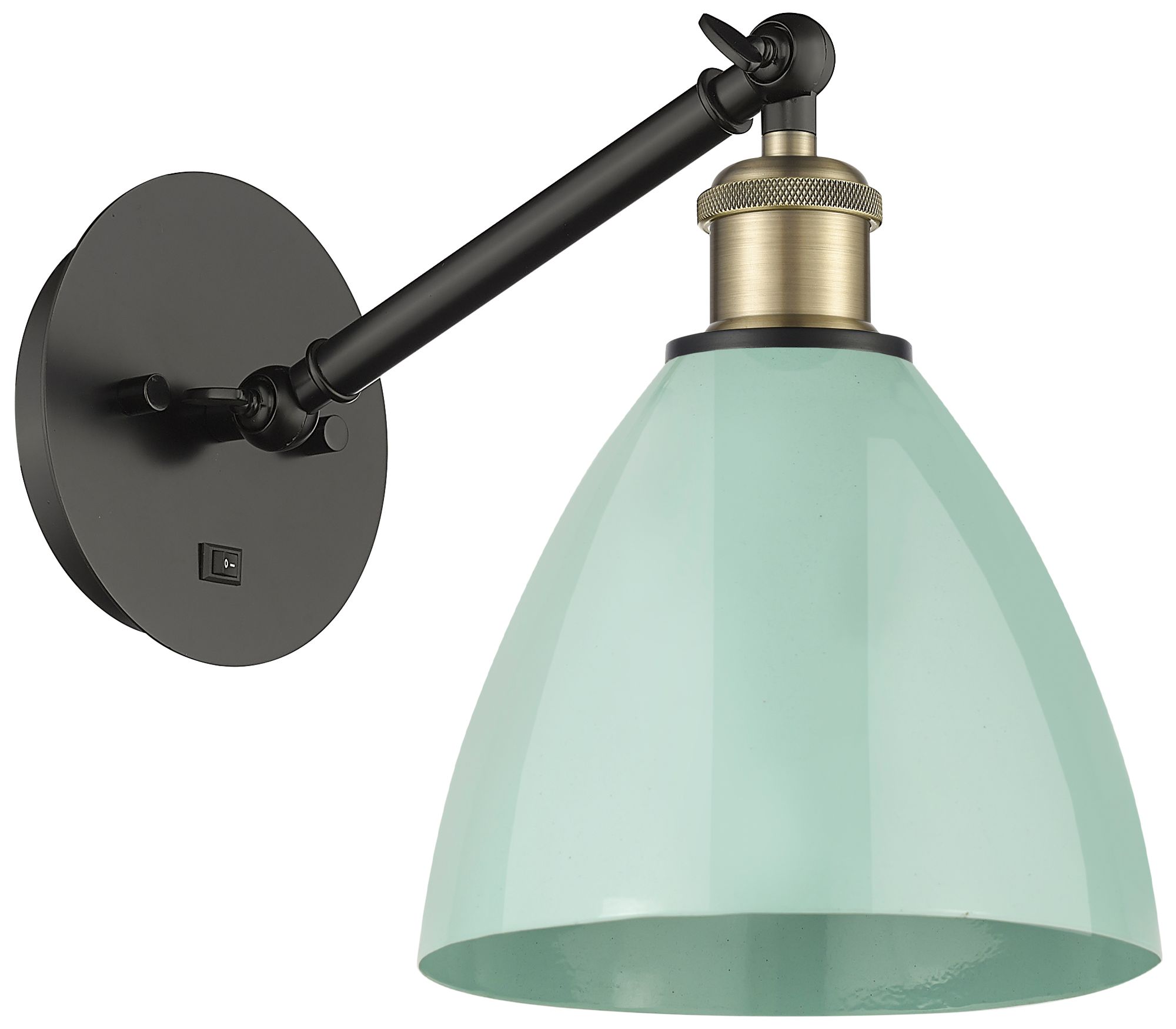 Ballston Plymouth Dome 13.25" High Black Brass Sconce w/ Seafoam Shade