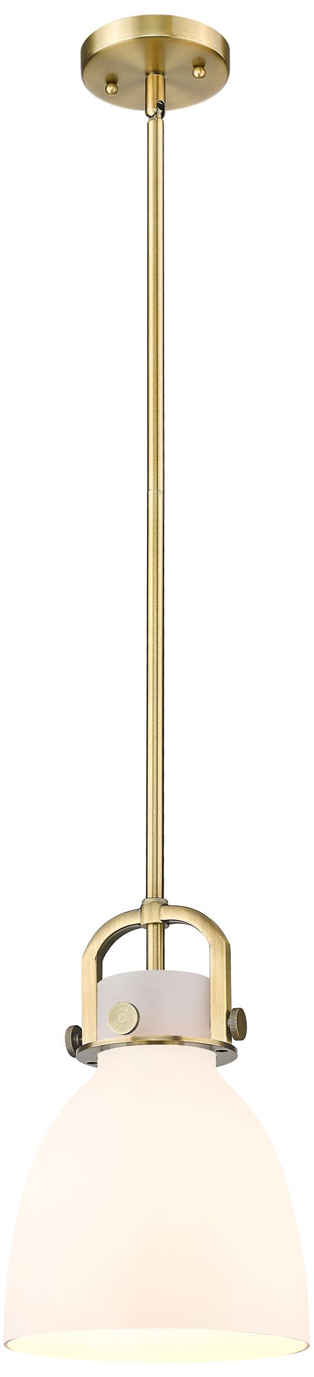 Newton Bell 8" Wide Stem Hung Brushed Brass Pendant With White Shade
