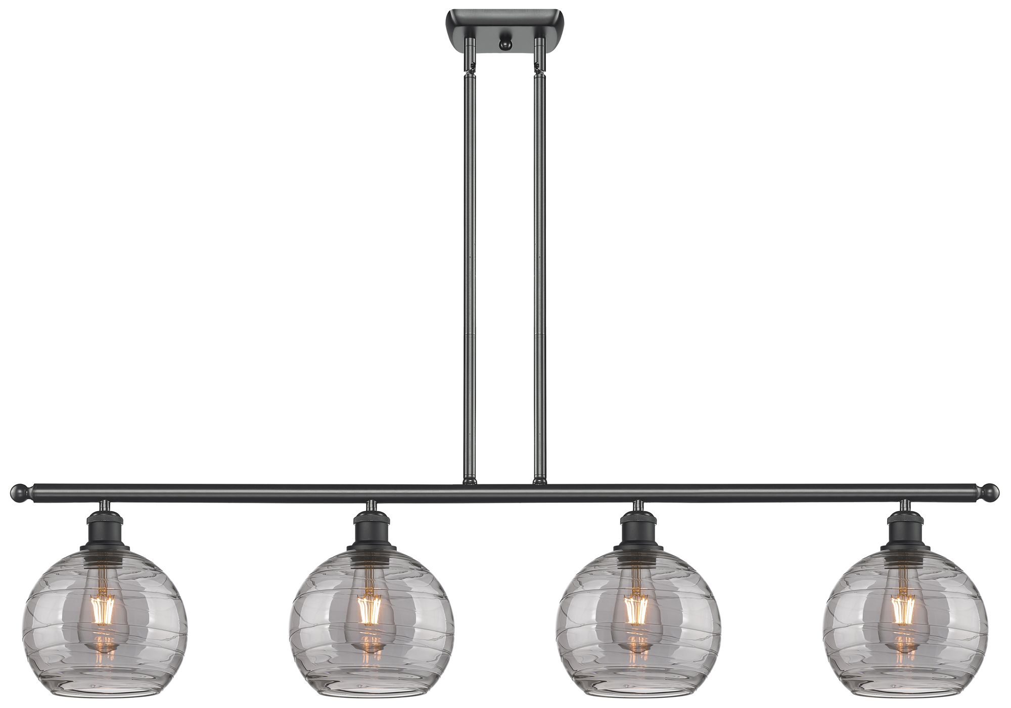 Athens 48"W 4-Light Black Stem Island Light w/ 8" Smoke Swirl Sha