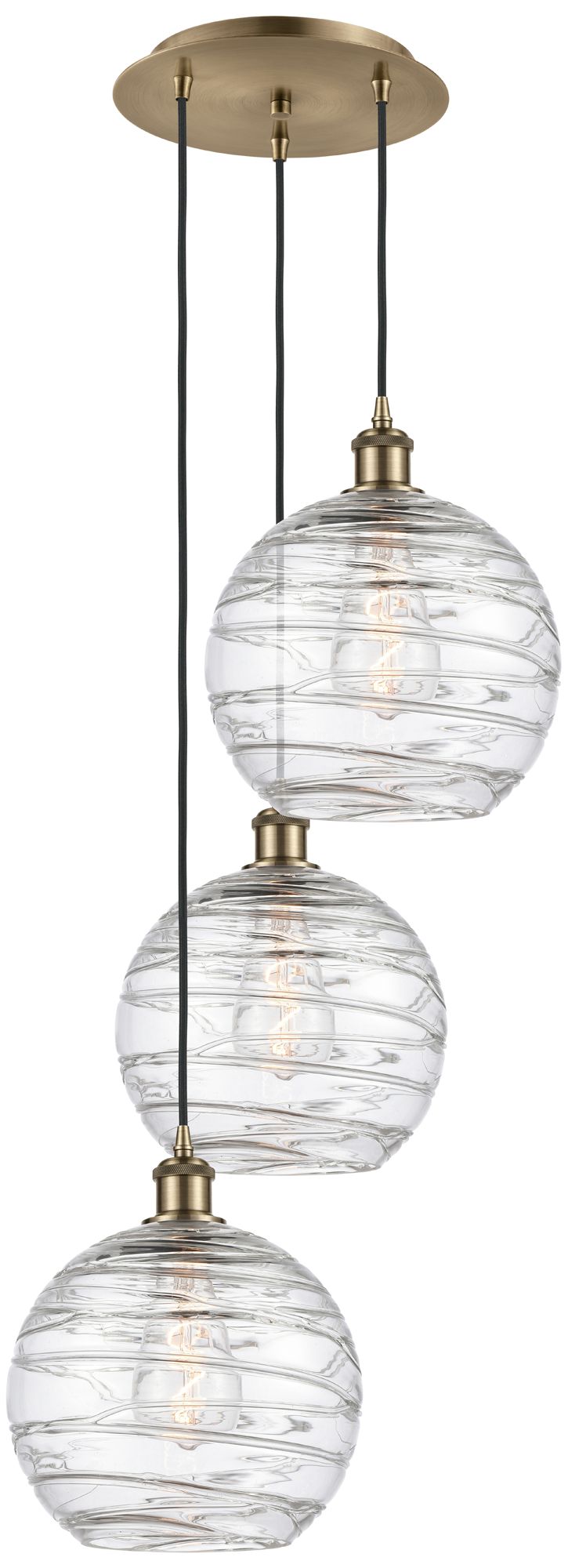 Athens 3-Light 17" Antique Brass Multi-Pendant With Clear Deco Swirl S