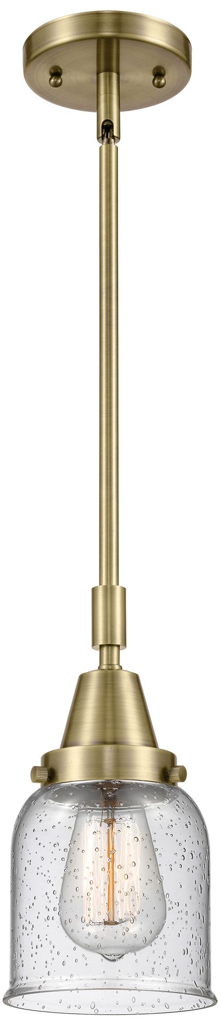 Caden Bell 5" Wide Antique Brass Stem Hung Mini Pendant w/ Seedy Shade