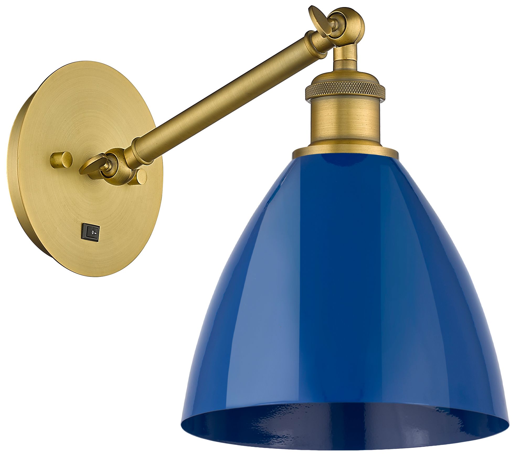 Ballston Plymouth Dome 13.25" High Brushed Brass Sconce w/ Blue Shade