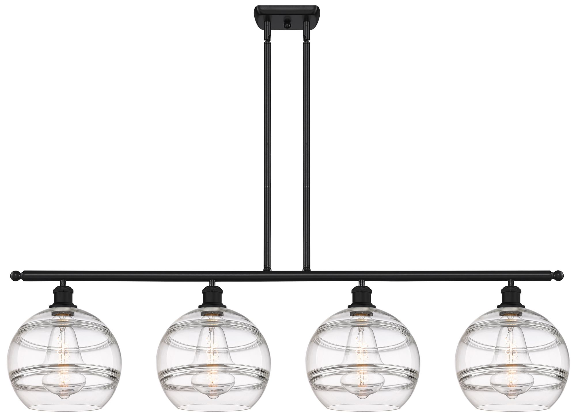 Ballston Rochester 48.25"W 4-Light Black Stem Island Light w/ Clear Sh