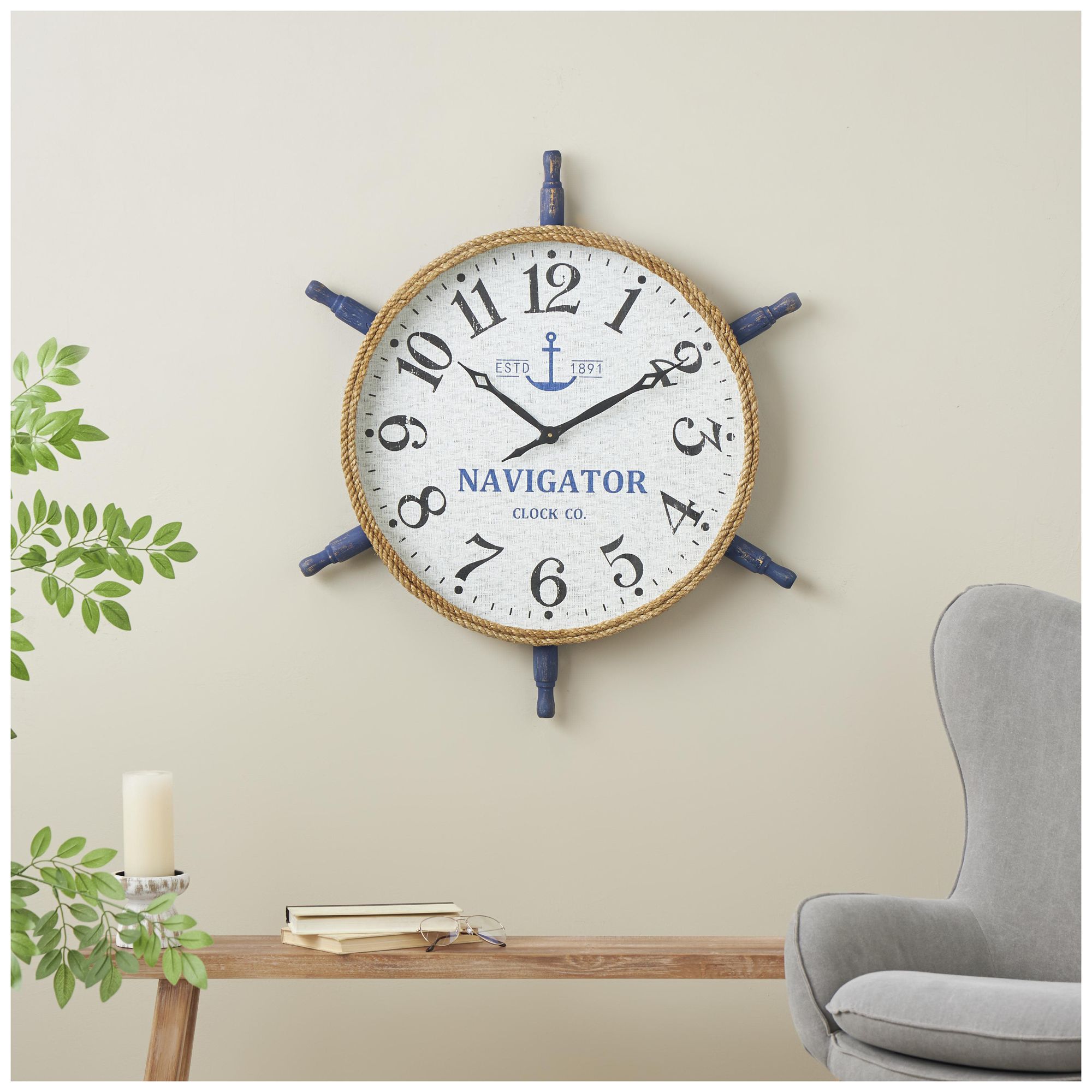White Wood Nautical Wall Clock, 33" x 3" x 33"