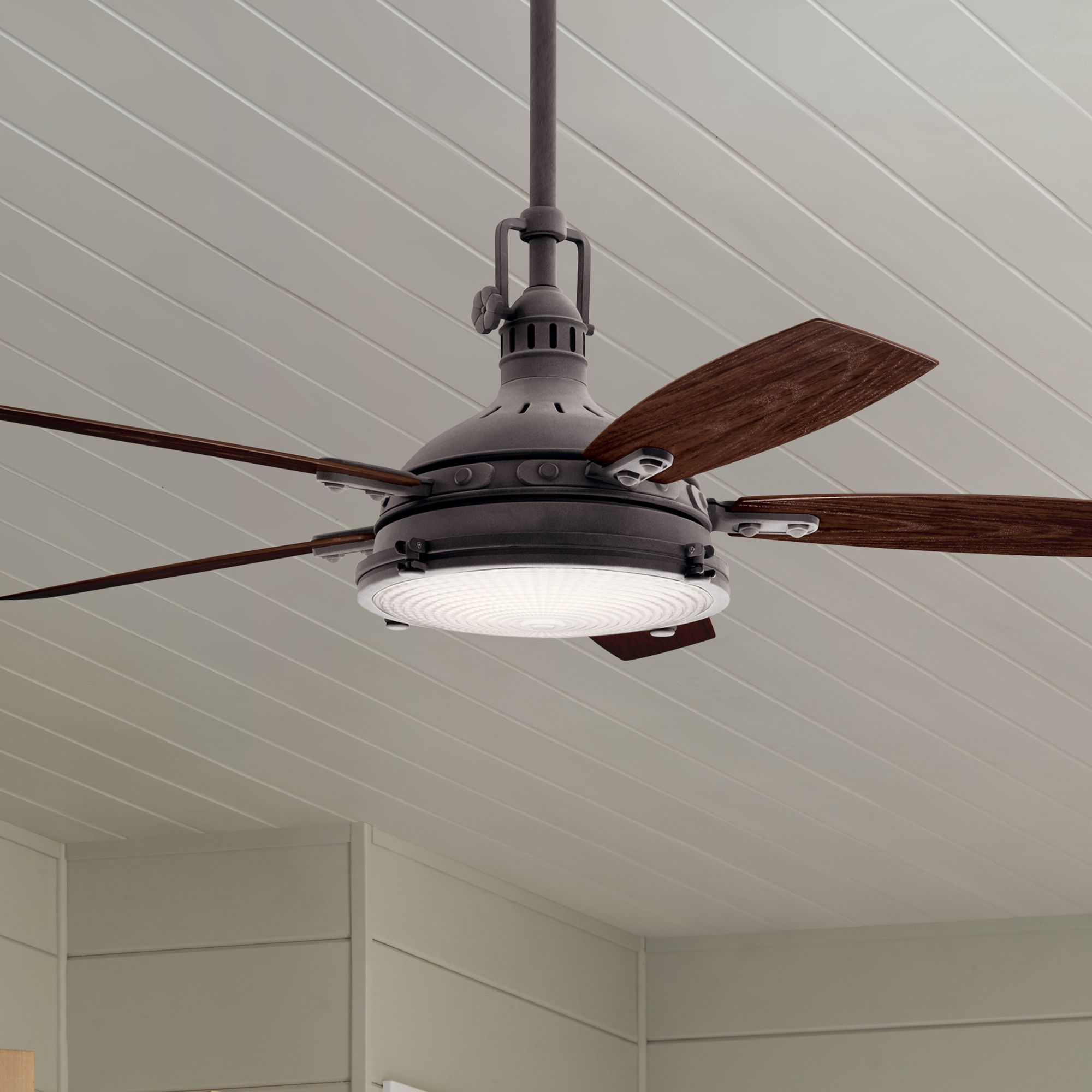60" Kichler Hatteras Bay Weathered Zinc Damp Rated LED Fan with Remote