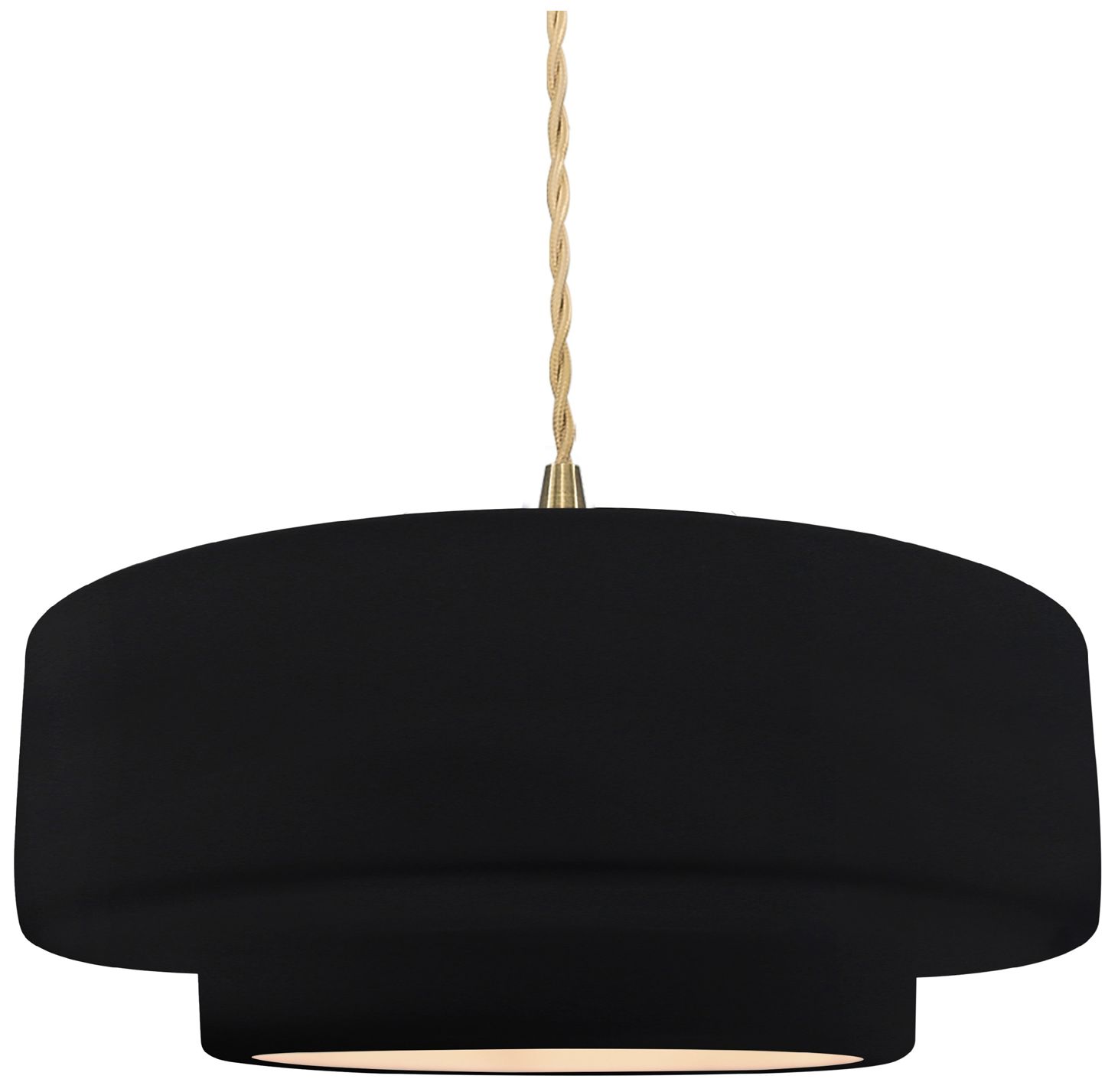 14.5"W Gloss Black/White Frame Brushed Brass Tier Beige Twisted LED Pe