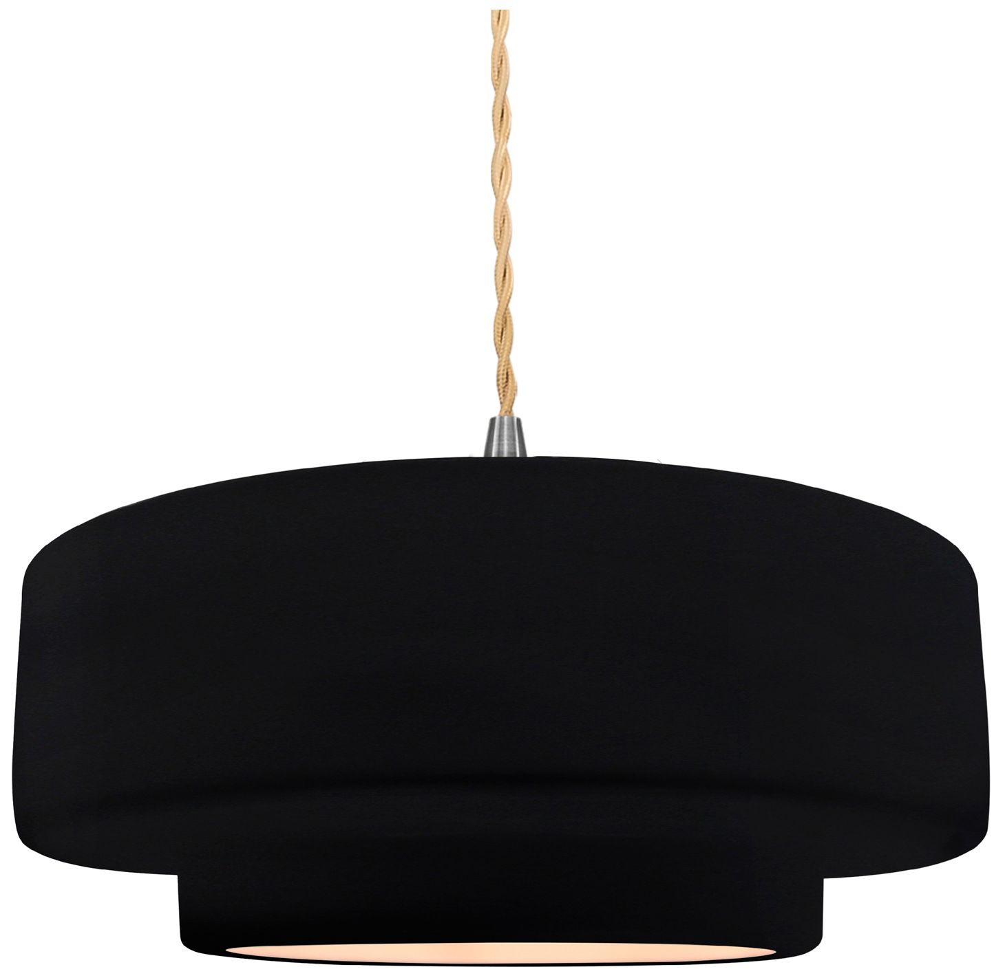 14.5"W Gloss Black/White Frame Nickel Tier Beige Twisted LED Pendant