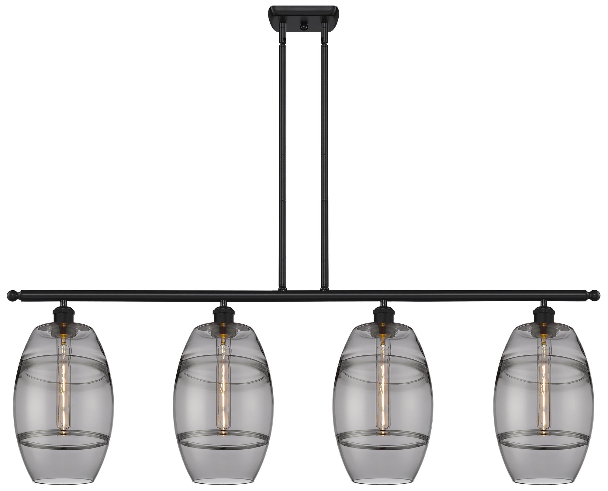 Ballston Vaz 48"W 4-Light Black Stem Island Light w/ 8" Smoke Sha